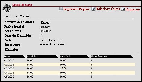 En ésta transacción se muestra el detalle del curso seleccionado.