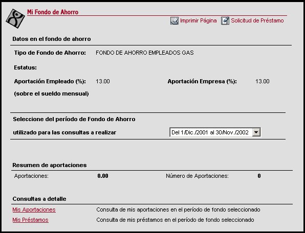 A través de esta transacción los usuarios del módulo puedan consultar la información respecto al fondo de ahorro, asimismo en esta transacción se pueden realizar solicitudes que son utilizadas para cuando el usuario requiere que se le realice un préstamo del fondo de ahorro.