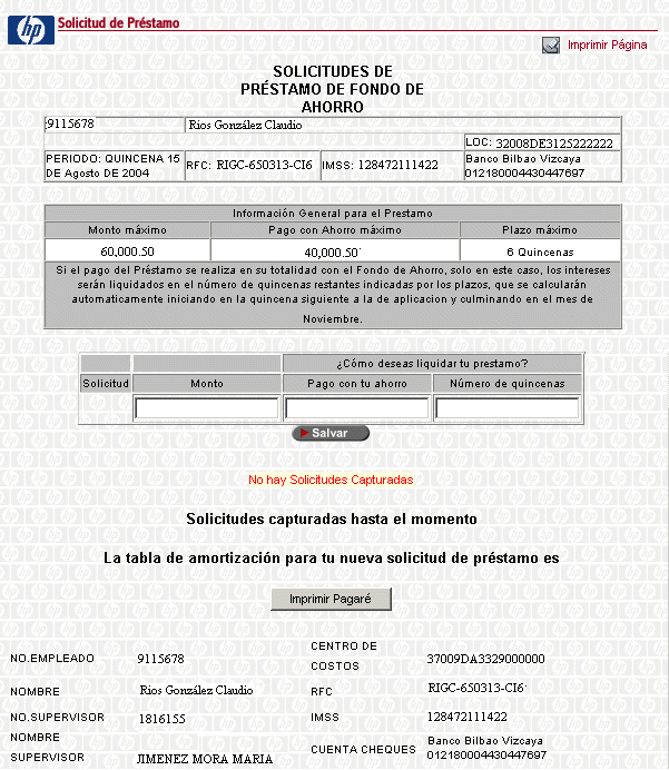 Por medio de esta transacción los usuarios de KIOSKO realizan las solicitudes de préstamo del Fondo de Ahorro.